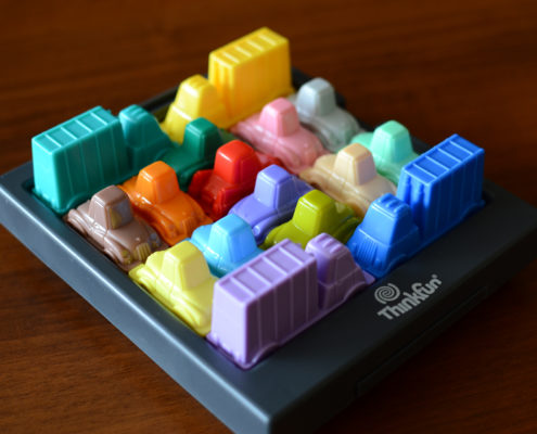 Pierwszy wpis w serii poświęcę Rush Hour, jednej z najbardziej znanych łamigłówek logicznych na świecie, za której wydanie odpowiada amerykańska firma ThinkFun. Ta jednoosobowa łamigłówka została zaprojektowana przez Noba Yoshigaharę w latach 70-tych, a w pierwszej sprzedaży pojawiła się w 1996 roku w Stanach Zjednoczonych i od tamtego czasu jest prawdziwym hitem – ukazała się w 30 krajach, sprzedano ją w milionach egzemplarzy, uzyskując przy tym aż 26 nagród!