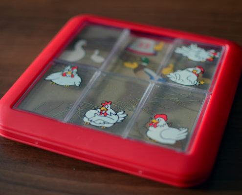 Kokoszki to łamigłówka logiczna z serii SmartGames, zaprojektowana przez Rafa Peetersa. Przeznaczona jest dla osób od 6 roku życia. Na rynku europejskim pojawiła się trzy lata temu, a w Polsce w 2012 r. Nie jest to „tradycyjna”, statyczna układanka. Owszem, opiera się na dopasowywaniu elementów i odtwarzaniu wzorca, jednak w tym przypadku mamy do czynienia z łamigłówką dynamiczną taką, w której położenie większości lub wszystkich elementów zmienia się w tym samym czasie.