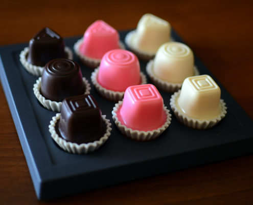 W obu wersjach czekoladki mają takie same kształty oraz dostępny jest woreczek podróżny.