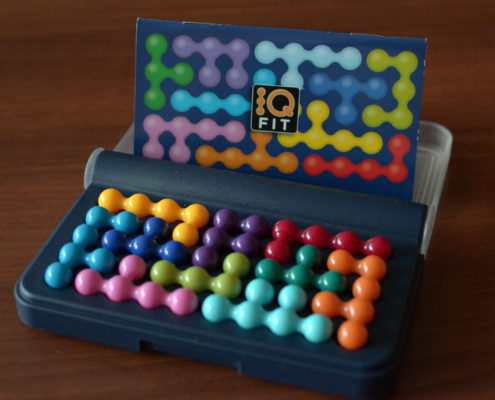 IQ FIT, IQ LINK – 120 zadań - „plansza” stanowi zarazem niewielkie pudełko, w którym zmieścimy zarówno elementy, jak i książeczkę z zadaniami.