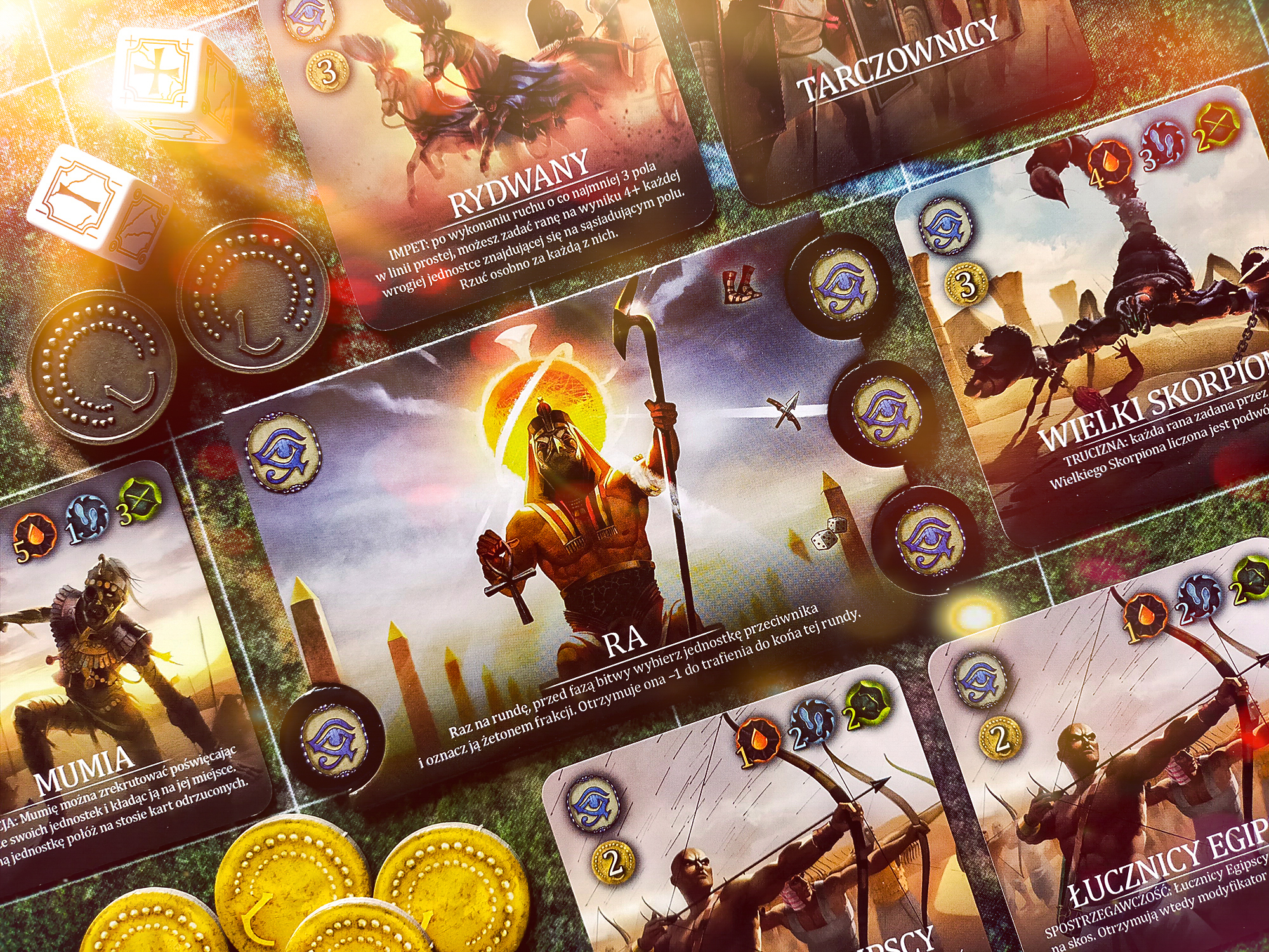 Egipcjanie – prowadzeni do boju oślepiającą łaską Ra, nacierają na wroga z zapałem godnym synów rozpalonej pustyni. Ich rozpędzone Rydwany wbijają się w przeciwników z morderczym impetem, siejąc spustoszenie wśród słabszych formacji, a podążający śladem kół i kopyt Tarczownicy – choć nie tak waleczni – idealnie sprawdzają się w roli ochrony dla wyjątkowo spostrzegawczych Łuczników.